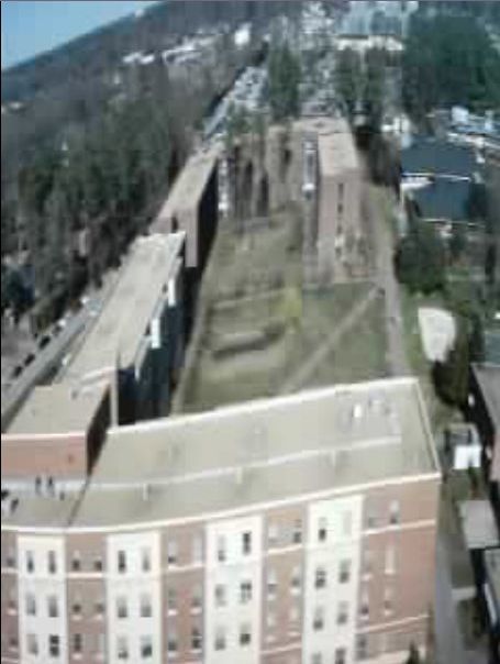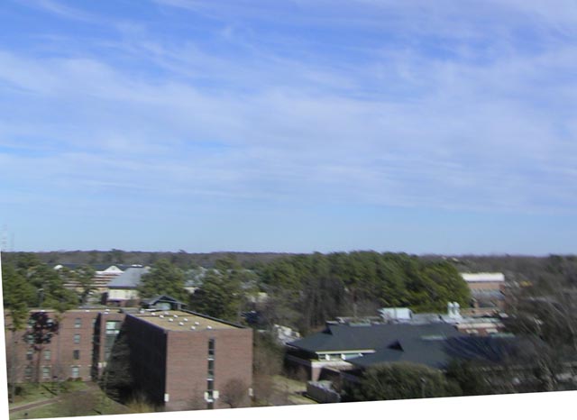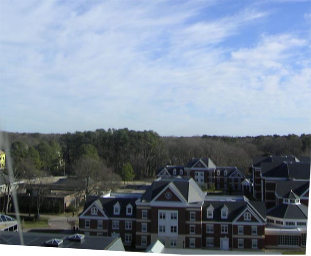 A skewed shot of that building next to James River. Ratcliffe, is it? Plus some other places. The bustling west end of west campus.