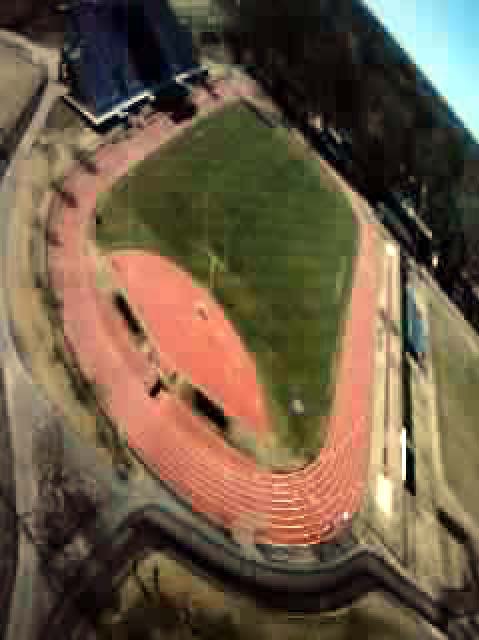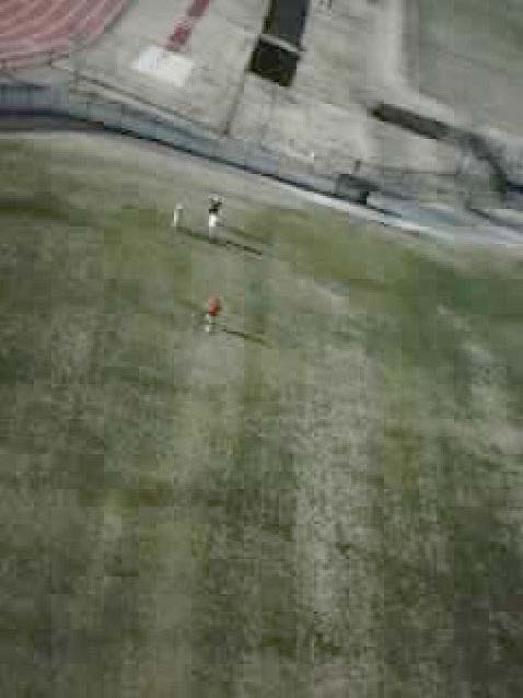 We tied the camera so it hung under the kite, told it to start recording video, and then sent the kite up. We let it get up about 80 meters, I think, before bringing it back down to see if it had worked. The video was, as expected, just a mess of frames as the camera spun and bounced. But I went through the video and pulled out the non-blurry frames.