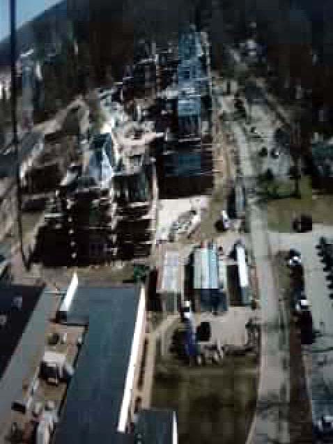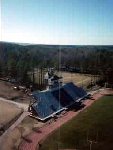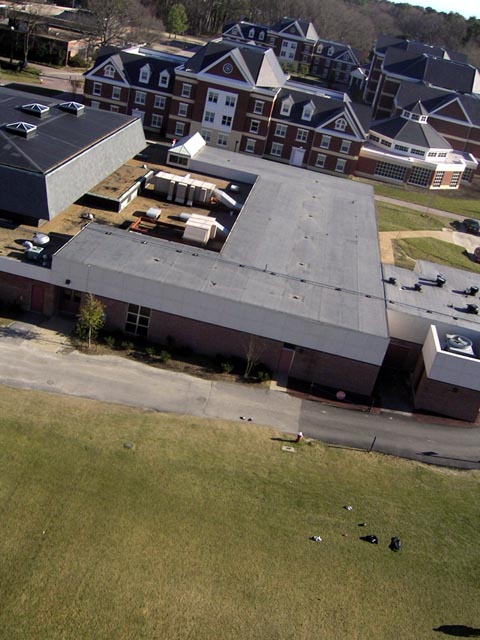 Looking east over the campus. Freeman Center, visitor parking, etc.