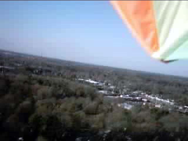 The trial run being marvelously successful, I am going to send it up maybe three or four times higher next time. For the next flight, I'm going to just affix the camera to the kite itself, so it always points back down in our general direction and doesn't wobble. The video should be good, though the kite might vibrate badly. Harris Teeter is selling six-foot nylon kites; I'll go get one later. Next time there's a decent wind, I'll do it again. Possibly tomorow morning.